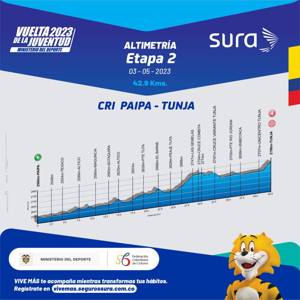Este miércoles se correrá la tercera jornada, una contrarreloj individual de 42,9 kilómetros entre Paipa y Tunja. En total serán 7 días de competencia hasta el domingo 7 de mayo.