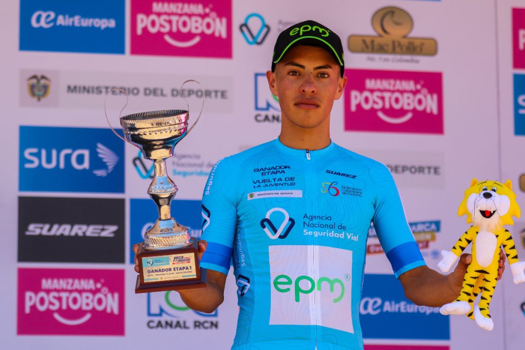 Jhonatan Chaves, ganador de la primera etapa en línea de la Vuelta de la Juventud 2023. (Foto Anderson Bonilla © RMC)