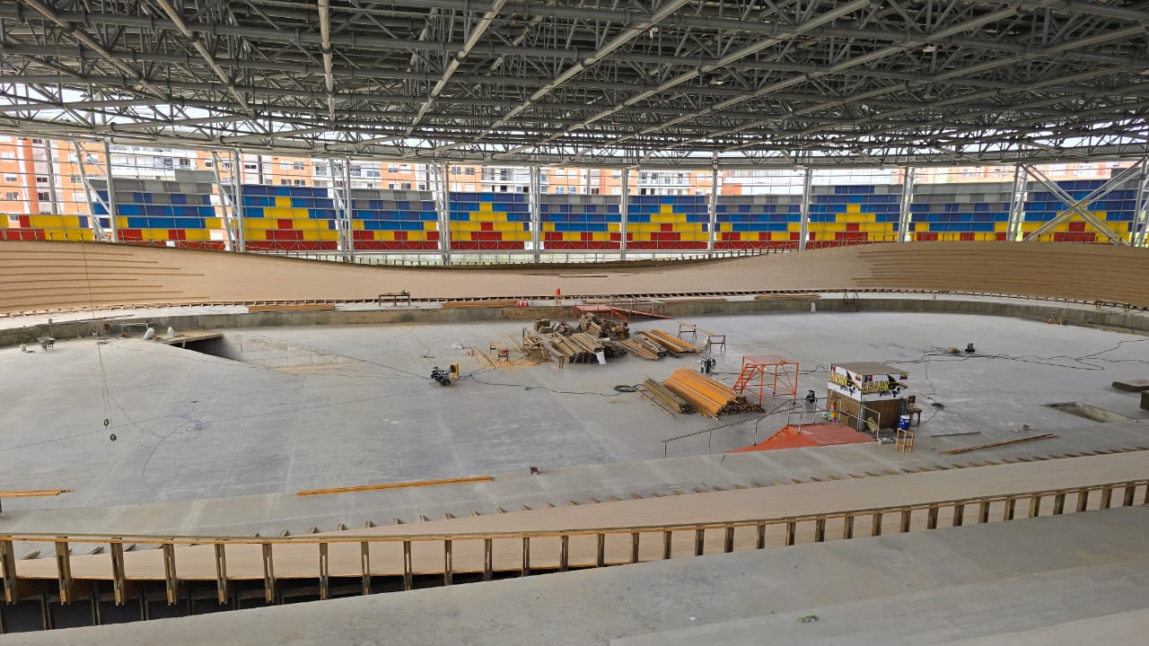 Nuestra visita permitió apreciar un notable adelanto en las instalaciones, comenzando por el montaje de la pista de madera, prácticamente terminado en su totalidad lo que permite señalar que esta parte fundamental del velódromo estará lista para su entrega por parte del contratista mexicano se hará el próximo 30 de abril como se tiene previsto en el cronograma.