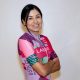 La ministra del Deporte, Patricia Duque, con el cuadro de Mariana Pajón. (Foto © Prensa Mindeporte)