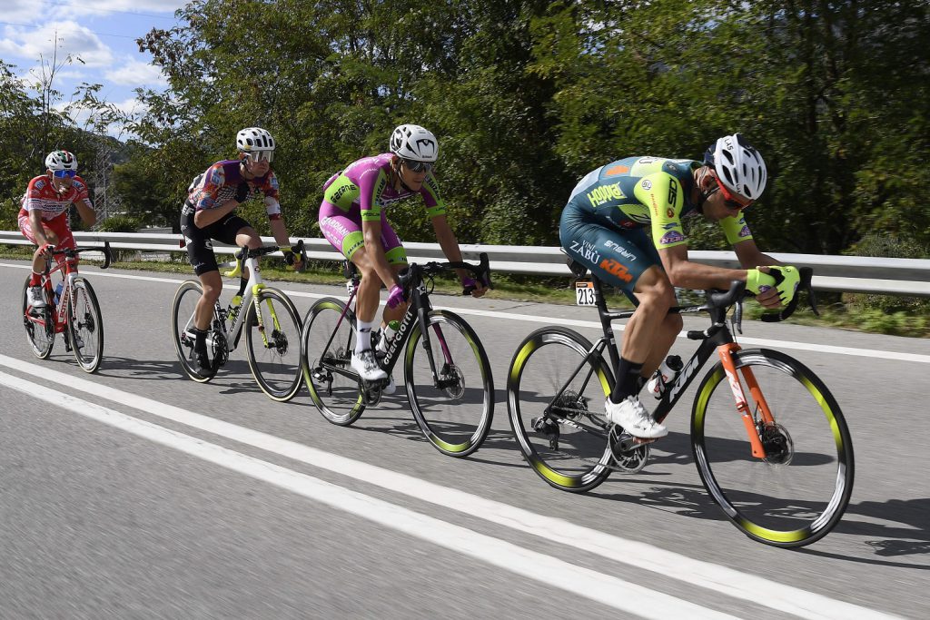 El Bora Hansgrohe se encargó de liderar la persecución sobre la escapada con la intención de que Peter Sagan rompiera su sequía de victorias. Con pelotón compacto en los últimos trece kilómetro, el descontrol se tomó el grupo, en el que los equipos interesados en entrar en la disputa por la victoria parcial buscaban la mejor posición.