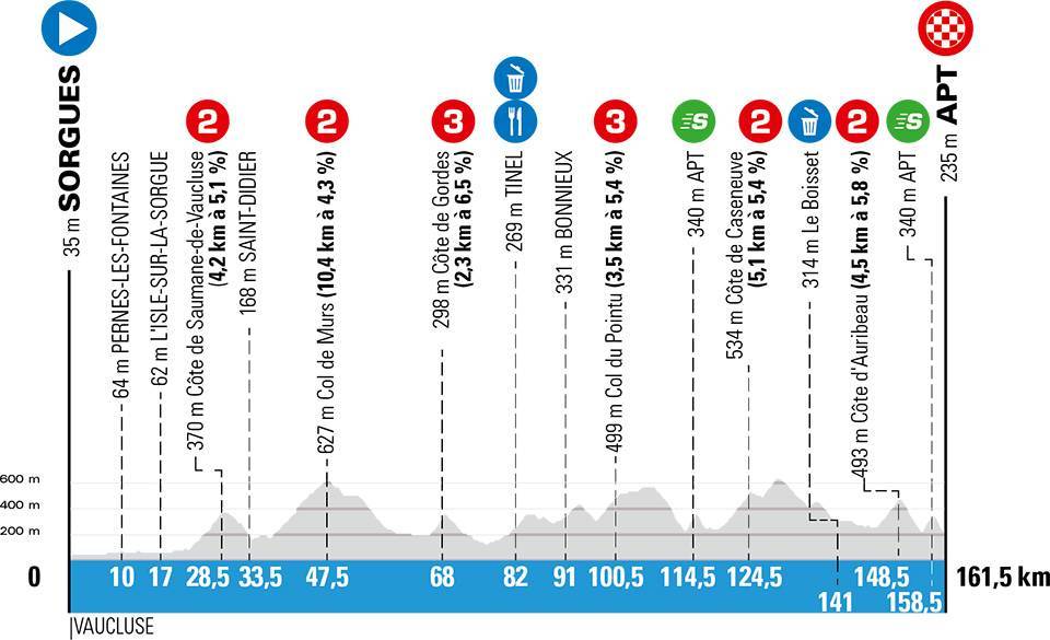 Desde los kilómetros iniciales se conformó la gran escapada del día con cuatro hombres; Ryan Mullen (Trek-Segafredo), Alexis Gougeard (Ag2R) Anthony Turgis (Direct Energie) y Jan Tratnik (Bahrain-McLaren) que fue el más combativo y luchó contra la rigorosa persecución del grupo que en los 80 metros finales le dio caza, dejándolo ad portas del triunfo.