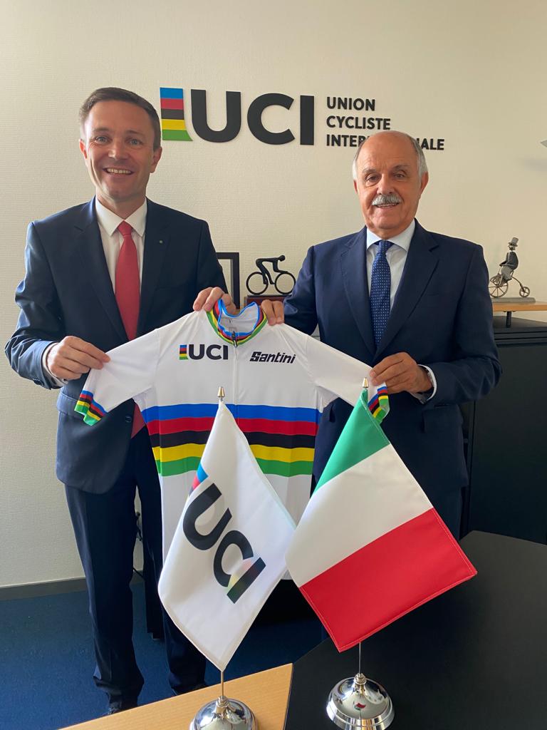 En relación con la sede para Imola comenzó señalando: “Se trata de un gran desafío para Italia y para Imola. Era necesario y justo con el ciclismo hacer este esfuerzo para tener el mundial este año. Italia es un país ciclístico que puso a rodar el lote después del fútbol ha realizado ya las grandes clásicas como Milano San Remo, Lombardía, Strade Bianche”.