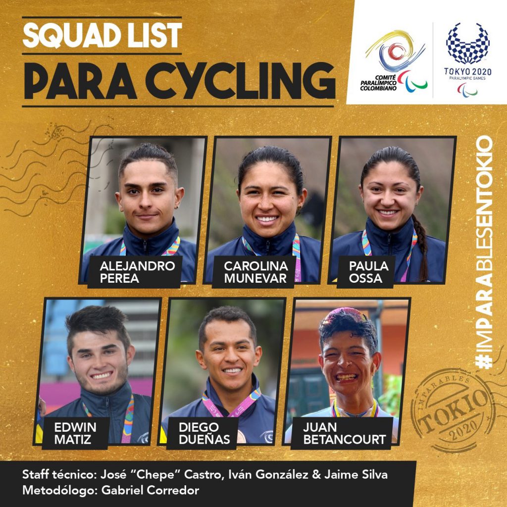 En las últimas horas han sido confirmados por parte del Comité Paralímpico Colombiano los seis ciclistas colombianos que estarán presentes en los Juegos Paralímpicos de Tokio que se realizarán del 24 de agosto al 5 de septiembre.