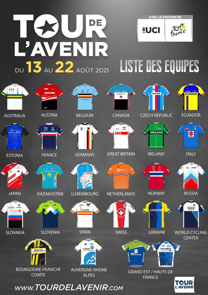 Este martes la organización del Tour del Avenir dio a conocer los 27 equipos que han sido invitados a la edición 2021 de la competencia ciclística más importante para corredores menores de 23 años. Como novedad principal en el listado de escuadras, se destaca la ausencia del seleccionado colombiano que no ha recibido la invitación.
