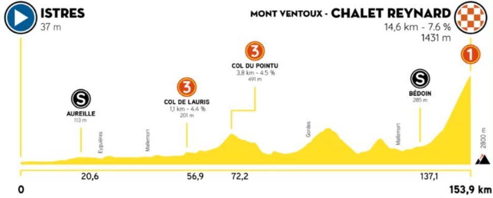 La penúltima y etapa reina del Tour de la Provence, se cumplirá este sábado con partida en Istres y arribo en el Mont Ventoux. Jornada de 153 kilómetros, que presenta dos puertos de tercera categoría en la primera parte del recorrido y ascenderá al Monte Ventoso por la vertiente del Chalet Reynard, que presenta 14.6 kilómetros de extensión al 7.6 % de dificultad.
