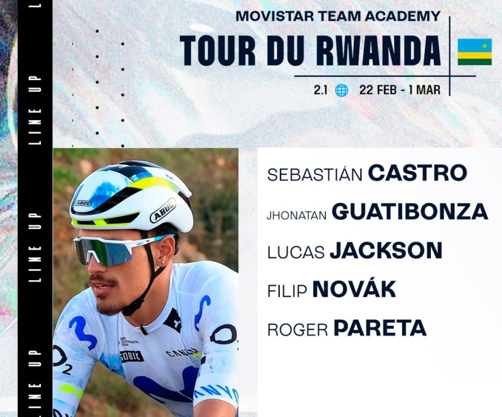 Además del joven sprinter colombiano, la alineación escogida para esta carrera en África estará compuesta por Sebastián Castro, Lucas Jackson, Filip Novak y Roger Pareta, quienes darán los primeros pedalazos oficiales del equipo de desarrollo del Movistar en el calendario internacional.