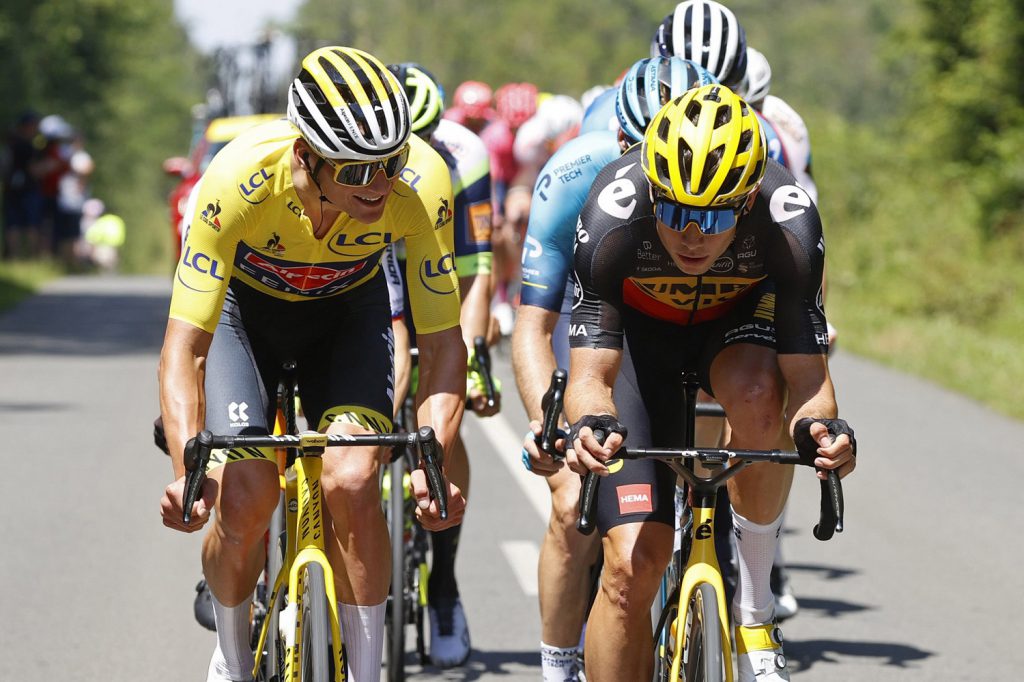 Una impresionante batalla se libró en el pelotón en los primeros kilómetros por integrar la escapada del día. Los principales promotores e impulsores de la numerosa fuga integrada por 29 hombres fueron el primero y segundo de la general, Wout van Aert (Jumbo Visma) y Mathieu Van der Poel (Alpecin Fenix), corredores que hicieron de esta; la jornada más extensa del Tour un escenario estelar en el que la estrategia tomó amplio valor y la fortaleza de equipo resultó limitada ante el férreo vagón de punta.