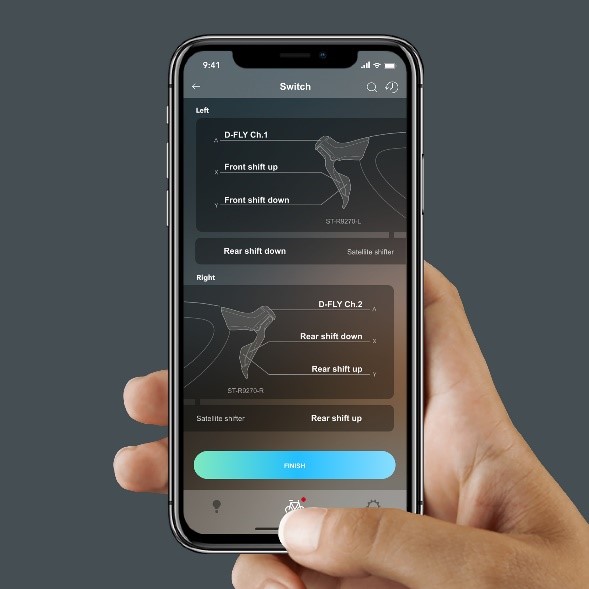 Las nuevas palancas de cambio de freno de disco hidráulicas inalámbricas de 2×12 velocidades (ST-R9270) ahora vienen con una parte de la cabeza elevada con una ligera curva hacia adentro y mayor área entre la palanca de cambios y el manillar para brindar nuevos niveles de comodidad y control. Esto proporciona a los ciclistas un mejor agarre con los dedos índice y pulgar, y un mejor agarre con los 3 dedos detrás de la palanca de freno. Al mismo tiempo ofrece un fácil acceso a la palanca de cambios en las bajadas. Otro cambio se produce en el aumento de la compensación entre los botones Di2 en la palanca. Esto permite una mejor diferenciación entre el botón de cambio hacia arriba y hacia abajo, especialmente con guantes o dedos mojados.