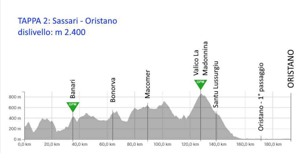 Desde la jornada inicial que se disputará entre Alghero y Sassari sobre una distancia de 155 kilómetros, el escenario de esta prueba será ampliamente montañoso, con una llamativa ascensión a Scala di Giocca, cerca de meta. Sassari dará la partida a la segunda fracción que transitará por dos puertos categorizados, el último de ellos será el Valico la Madonnina, escalada de alta dificultad que finaliza a 50 kilómetros del arribo en Oristano.