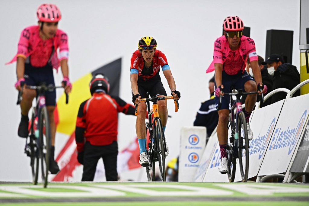 Previo al inicio de la escalada final, Esteban Chaves (Team BikeExchange) tuvo un pinchazo en la rueda delantera de su bicicleta que lo dejó rezagado del grupo principal. El alto ritmo impuesto por el UAE Team Emirates, dejó disminuido el grupo principal, del que se descolgaban Sergio Henao (Qhubeka NextHash) y Nairo Quintana (Arkea Samsic) que no podían soportar la gran aceleración de los coequiperos del líder Tadej Pogačar.