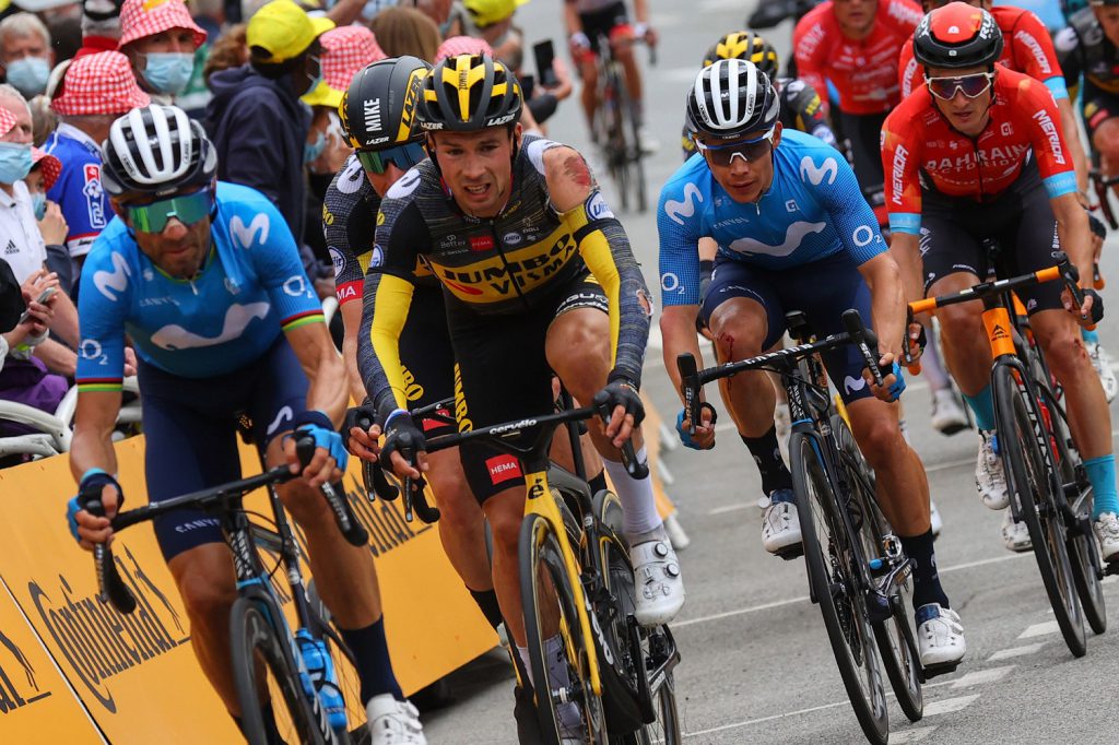 Sobre los últimos veinte kilómetros el nerviosismo se tomó el pelotón, en el que se libraba una intensa batalla por la ubicación y se produjeron diversas caídas. A doce kilómetros de meta, Miguel Ángel López (Movistar Team) resultó afectado levemente y logró incorporarse sin visibles muestras de dolor. Posteriormente sería Primož Roglic (Jumbo Visma) en los últimos diez kilómetros el hombre que se iría al piso, perdiendo toda opción de conectar con el muy reducido grupo principal y cediendo en meta, tanto el colombiano como el esloveno 1 minuto 21 segundos con el vencedor, convirtiéndose en el gran damnificado del día.