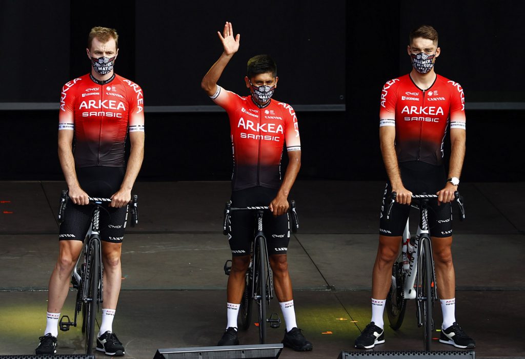 El EF Education Nippo de Rigoberto Urán y Sergio Higuita pasó rápidamente por el escenario y luego el turno fue para el Arkea Samsic de Nairo Quintana– reconocido como dos veces subcampeón del Tour y Warren Barguil quien se dirigió a los asistentes señalando. “Estoy muy contento de estar en mi región y de tener el Tour tan cerca”.