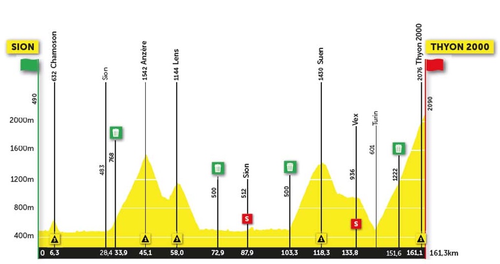 La penúltima y etapa reina parte de Sion y presenta cinco dificultades montañosas; dos de tercera y tres más de primera categoría, la última de ellas sobre la propia línea de meta en Thyon 2000, escalada de 20.7 Km al 7.6 % de dificultad. Con una contrarreloj individual de 16.1 Km en Friburgo, concluirá el Tour de Romandía 2021, etapa en la que sobresale una cota de 700 metros en pavé en los primeros dos kilómetros.