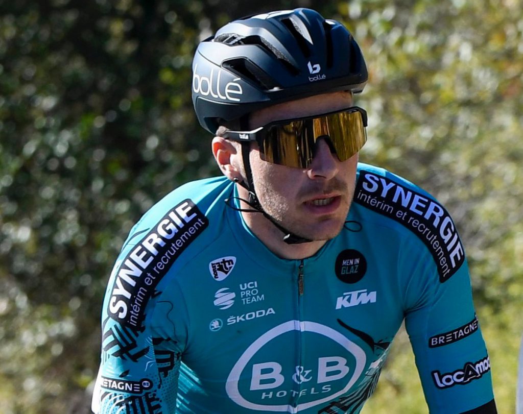 Luego siguió una batalla entre el remanente de la fuga compuesto por Paul Ourselin (TotalEnergies) y Alexix Gougeard (B&B Hotels-KTM) y el pelotón, que perseguía enfilado a toda velocidad guiado por el Cofidis.