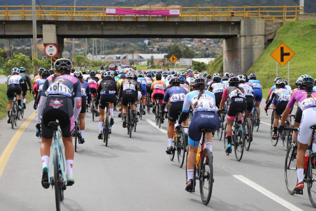 El pelotón en acción en la primera etapa de la Vuelta a Colombia Femenina 2022. (Foto © Fedeciclismo)
