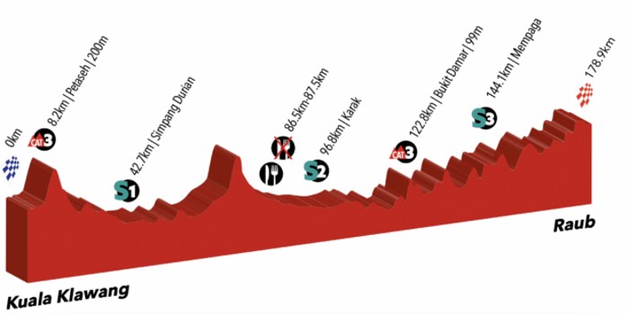 Las etapas iniciales no están exentas de desafíos, el día de apertura de 157,3 km desde Kuala Pilah incluye 5 subidas categorizadas, antes de que la carrera llegue hasta Look Out Point para un posible sprint frente a las Torres Gemelas Petronas, en el centro de Kuala Lumpur. La segunda jornada será rompepiernas con 178,9 kilómetros.