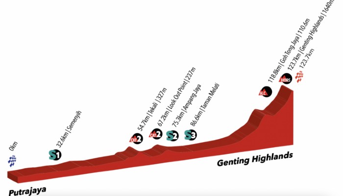 Luego está el tercer parcial, que está configurado para ser importante para la general con 131,9 kilómetros desde Putrajaya hasta Genting Highlands, donde los ciclistas se enfrentarán a dos subidas exigentes de segunda categoría para después enfrentar el doble desafío de las subidas HC de Gohtong Jaya y Genting Highlands en rápida sucesión con el Gohtong Jaya a solo 20 km antes de la línea de meta. Luego el pelotón subirá nuevamente hacia Genting Highlands, 8 kilómetros con una pendiente promedio del 10 % y secciones del 15 %.
