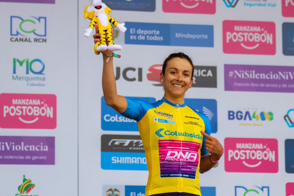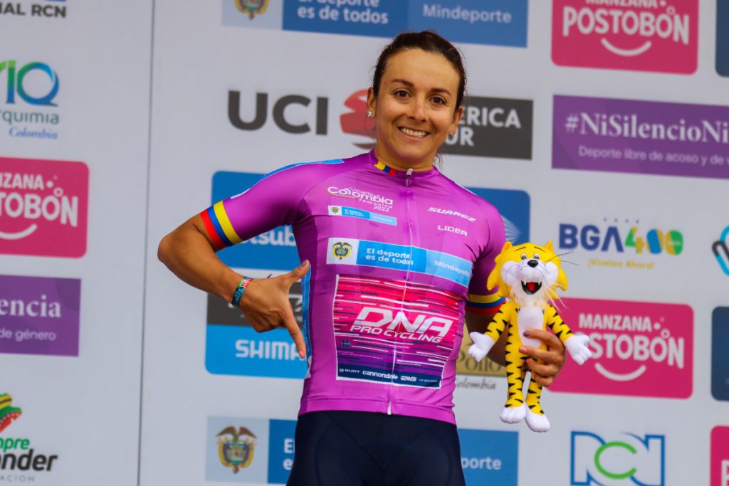 La campeona nacional de ruta batió en un embalaje cuesta arriba a sus compatriotas Lina Marcela Hernández (Colombia Tierra de Atletas GW Shimano) y a Carolina Vargas (CM Team), quienes entraron segunda y tercera respectivamente.