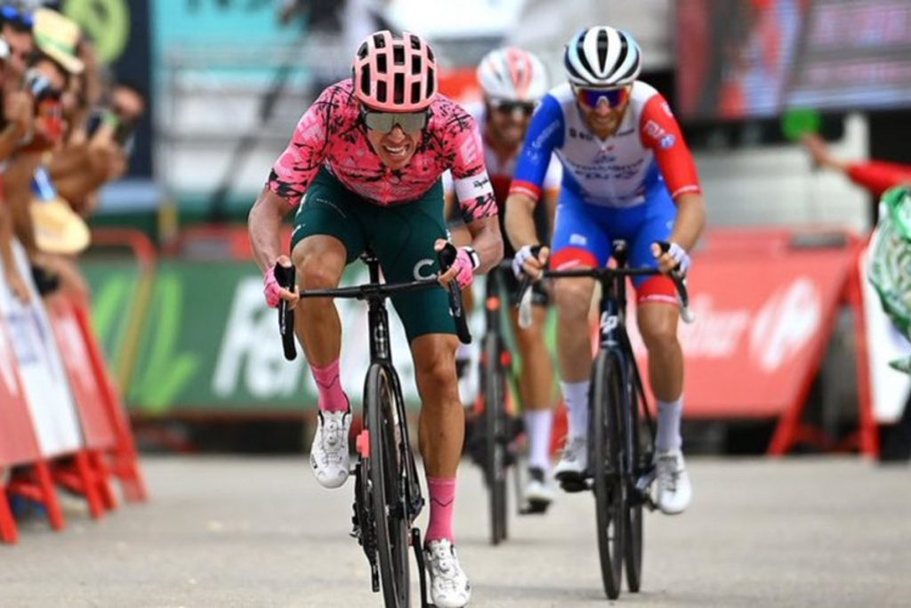 En una jornada montañosa llena de emoción, el ciclista colombiano Rigoberto Urán (EF Eduaciton EasyPost) ganó de forma espectacular la etapa 17 de la Vuelta a España en los últimos metros. El ‘Toro de Urrao’ le ganó el duelo al francés Quentin Pacher (Groupama – FDJ) y al español Jesús Herrada (Cofidis), quienes terminaron 2° y 3° respectivamente.