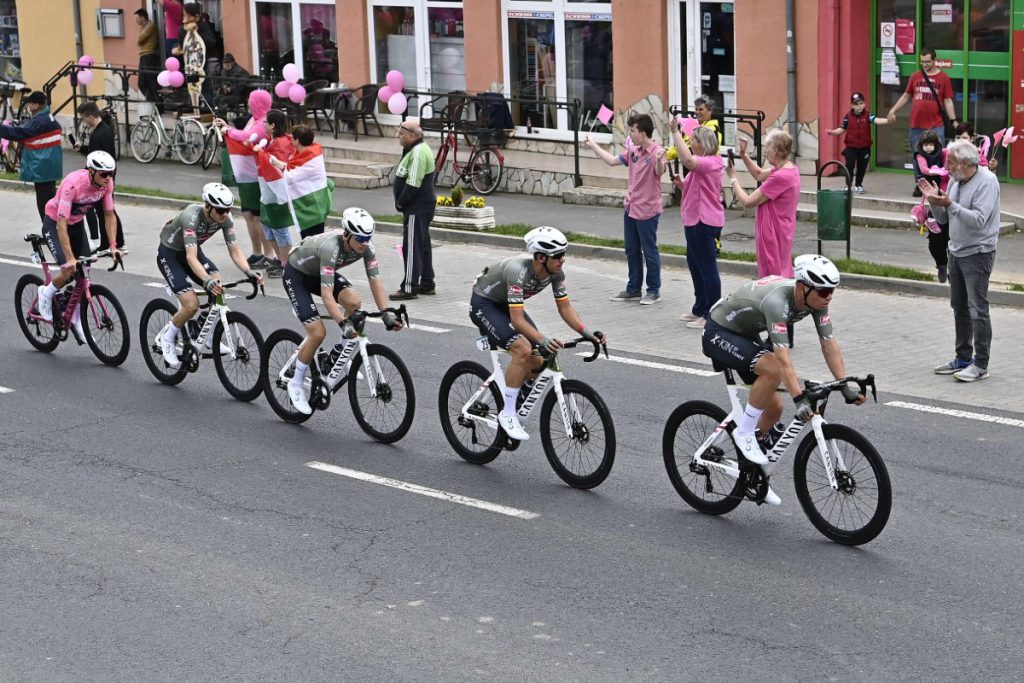Gran parte de la carrera transcurrió a un ritmo parsimonioso, pero a 50 kilómetros de la llegada el Alpecin-Fenix se puso por delante. El equipo de maillot rosa Mathieu van der Poel redujo la ventaja de los fugados rápidamente. Por el camino también se dio el primer abandono de la Corsa Rosa: Jan Tratnik sufrió demasiado en la muñeca tras su caída en el día inaugural y se retiró.