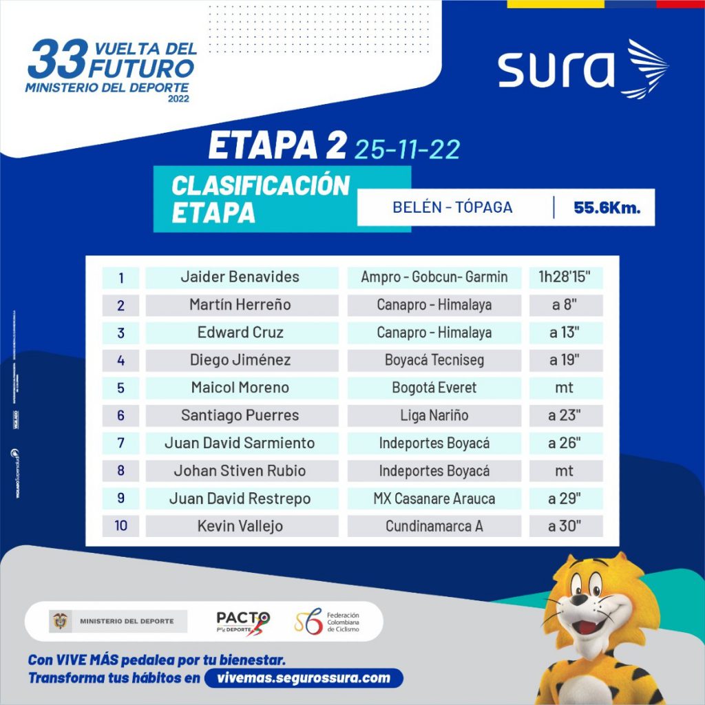 Jaider Benavides sale victorioso en Tópaga y se adueña del liderato en la Vuelta del Futuro 2022
