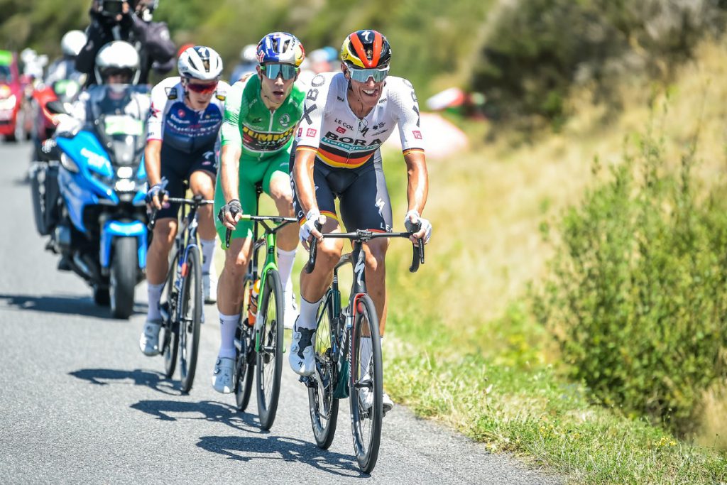 La fuga del día originalmente tuvo a 3 corredores con Wout van Aert (Jumbo-Visma), Nils Politt (Bora-Hansgrohe) y Mikkel Honoré (Quick Step Alpha Vinyl), pero el belga se descolgó rápidamente y el dúo fue capturado a menos de 55 kilómetros para la llegada.