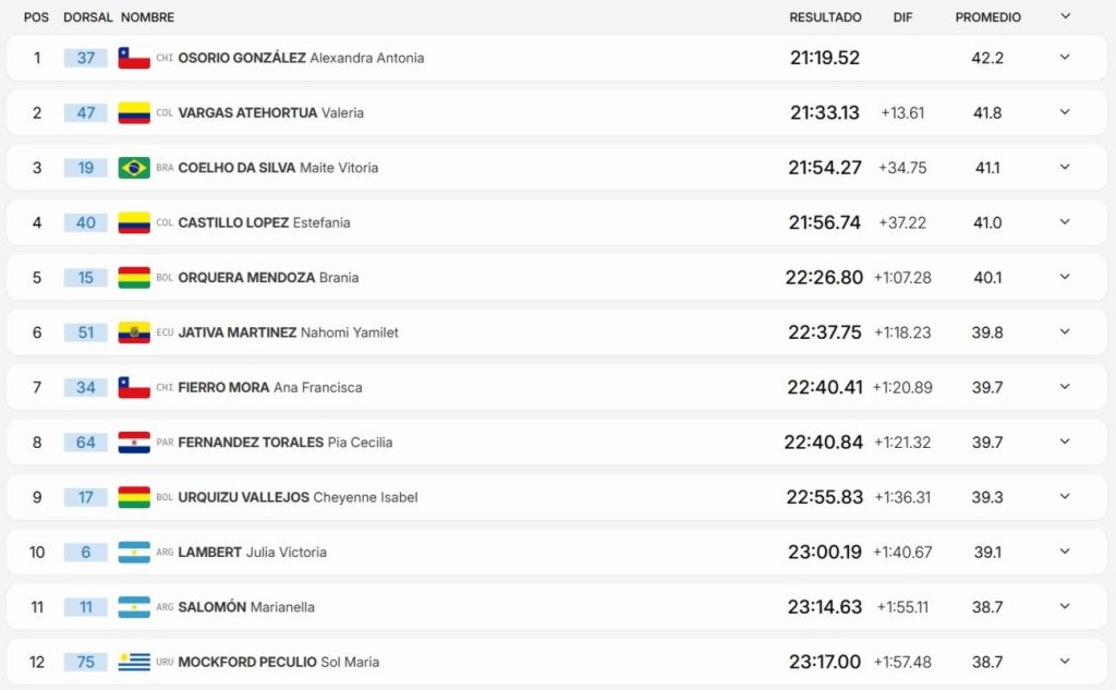 También fue destacada la actuación de Emanuel Restrepo, quien finalizó en la octava posición con un tiempo de 36:04, mostrando regularidad en los tres pasos intermedios y aportando puntos importantes para la delegación nacional.