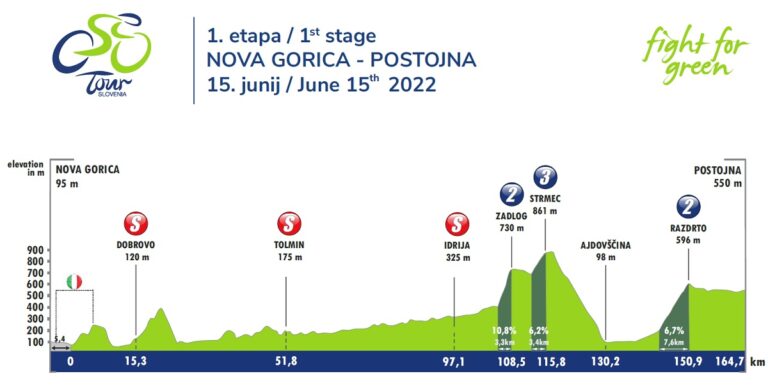 1ª etapa, miércoles 15 de junio | Nova Gorica – Postojna (164,7 km)