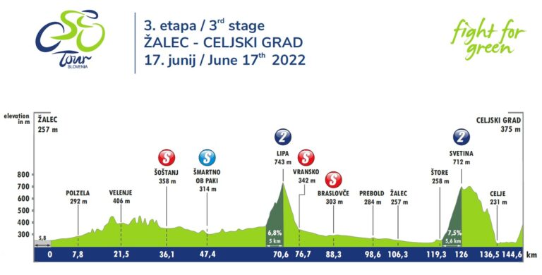 3ª etapa, viernes 17 de junio | Žalec – Celjski Grad (144,6 km)