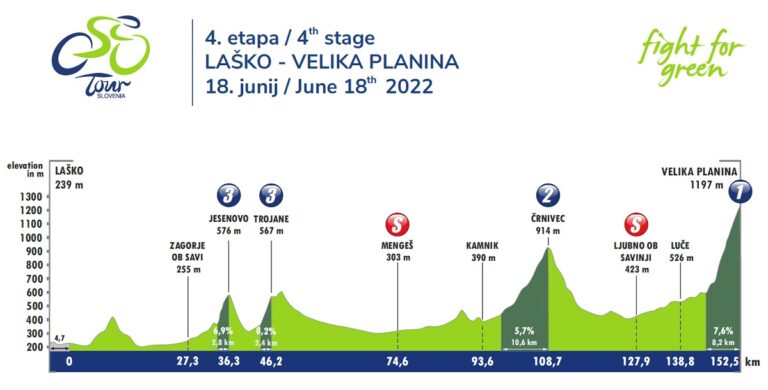 4ª etapa, sábado 18 de junio | Laško – Velika Planina (152,5 km)