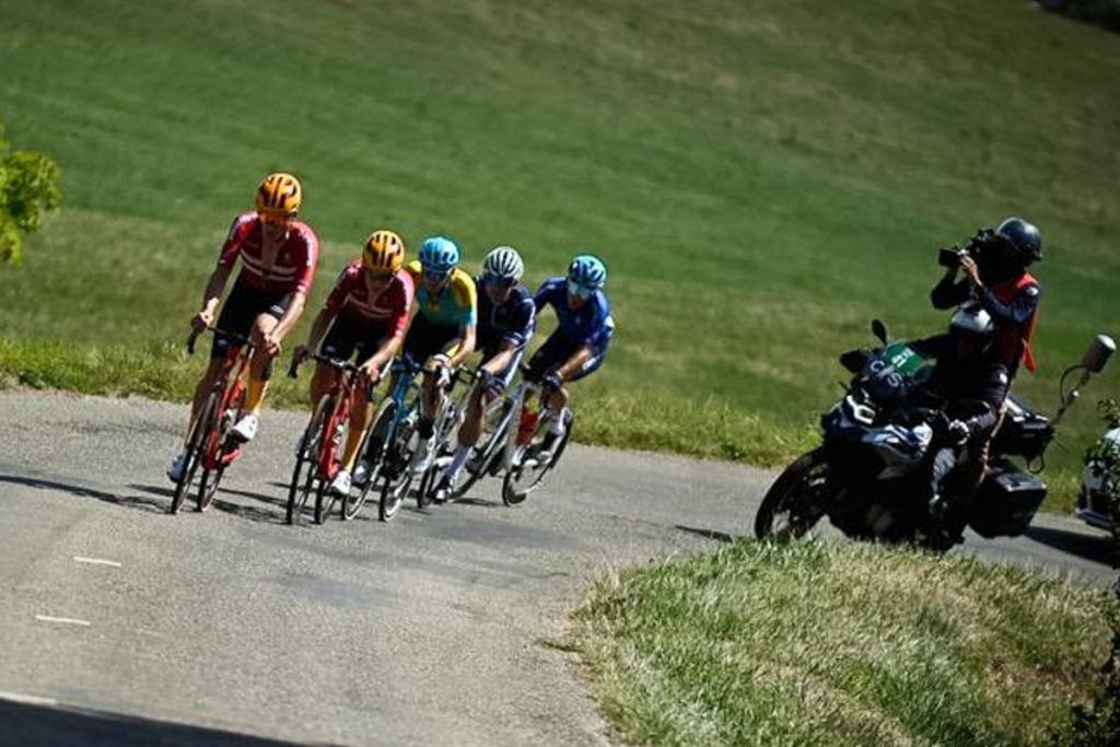 En una fracción repleta de colinas en el Jura y Ain, un grupo de cabeza formado por Gleb Brussenskiy (Kazajstán), Simon Dalby (Dinamarca), William Blume Levy (Dinamarca), Alessandro Fancellu (Italia), Mathis Le Berre (Francia) y Loe van Belle (Países Bajos) protagonizaron la fuga del día, pero sobre el final los capturaron.