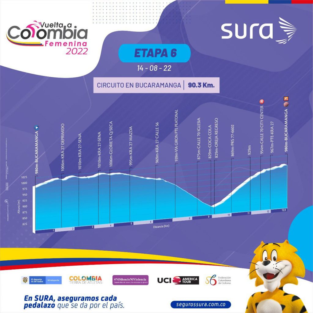 Circuito en Bucaramanga (12,9 kilómetros – siete vueltas para completar 90,3 km).