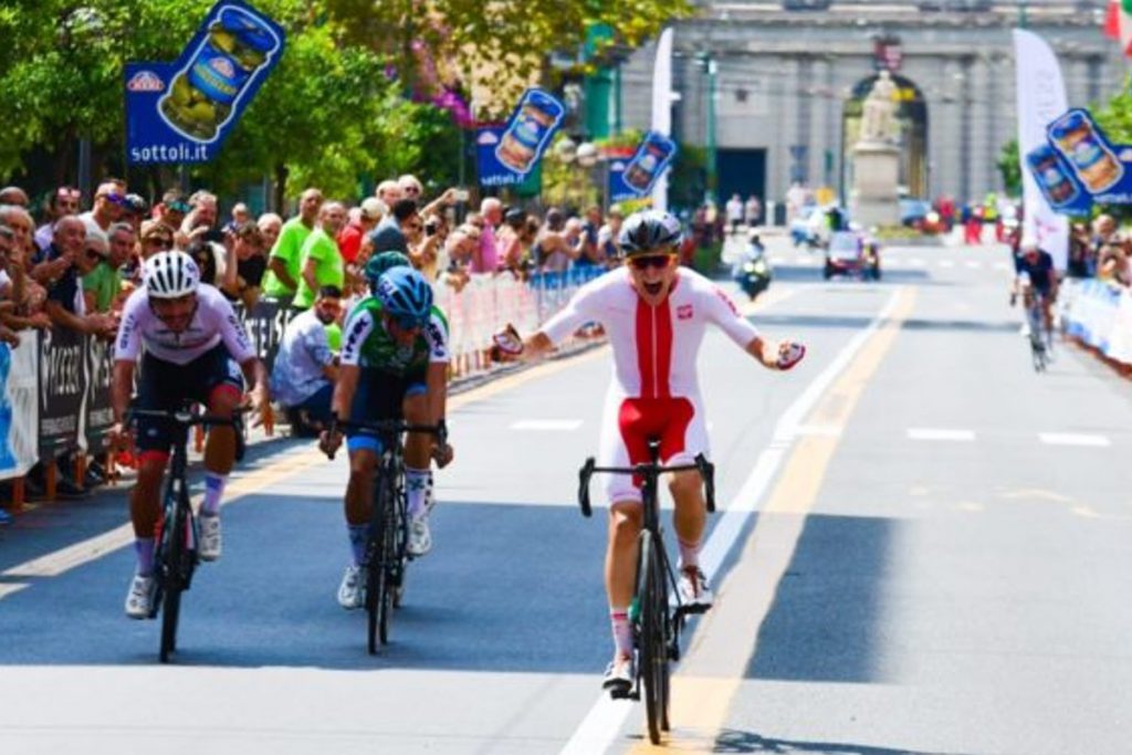 La primera fracción fue ganada por Michał Żelazowski al imponerse desde la fuga en un sprint reducido, luego de recorrer 91,2 kilómetros entre Portofino y La Spezia. El corredor polaco se llevó el triunfo por delante del portugués António Morgado y del italiano Simone Gualdi.