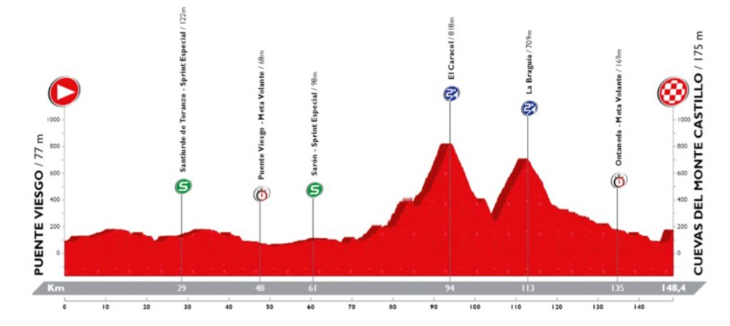 Puente Viesgo cerrará la carrera española con la jornada más larga, que contará con un recorrido de 148,4 kilómetros que incluye una subida final a las Cuevas del Monte Castillo, casi un kilómetro por encima del 9% que definirá al ganador final de la prueba.