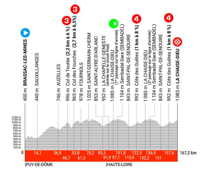 La ronda francesa continuará este lunes con la disputa de la segunda etapa, una fracción ondulada de 167,3 kilómetros entre Brassac-les-Mines y La Chaise-Dieu, que incluye cuatro puertos montañosos.