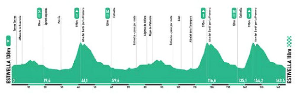 La novel carrera española presentará un recorrido de 163,4 kilómetros con salida y final en el municipio de Estivella. Se presenta como una oportunidad para los escaladores teniendo en cuenta las dos subidas al exigente Alto del Garbí situadas en la parte final de su recorrido. Un puerto de poco más de 5 km, pero con pendientes medias por encima del 9%, suficiente para abrir diferencias entre los candidatos a la victoria. Sin embargo, desde que se corone por última vez hasta meta restarán aún 20 km muy rápidos de terreno favorable.
