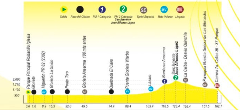 Ascendiendo a la Monteñuela quedaron en punta José Misael Urián (Team Indeportes Boyacá Avanca), Daniel Abreu (Arroz Zulia – Ángeles Hernández-JB), Luis Miguel Martínez (SuperGiros Alcaldia de Manizales), Santiago Ramírez (Avinal Team Galiz-Alcaldía del Carmen), Óscar Téllez (Team Fundecom-Arroz Sonora-Calzados Gocci-Multirepuestos Bosa), Mateo Mondragón (EPM -GO RIGO GO) y Freddy Avila (Colombia Potencia de la Vida-GW Shimano).