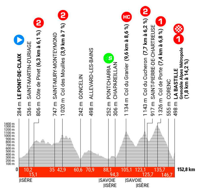 La ronda francesa finalizará este domingo con la disputa de la octava etapa, otra fracción montañosa de 152,8 kilómetros, que se correrá entre Le Pont-de-Claix y Grenoble, con final en alto.