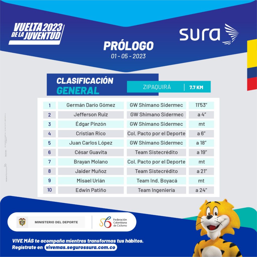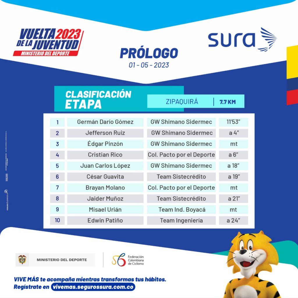 Arrancó la edición 56 de la Vuelta de la Juventud con gran dominio del GW Shimano-Sidermec haciendo el 1, 2 y 3. La victoria se la llevó Germán Darío Gómez en un prólogo de 7,7 kilómetros por las calles de Zipaquirá.