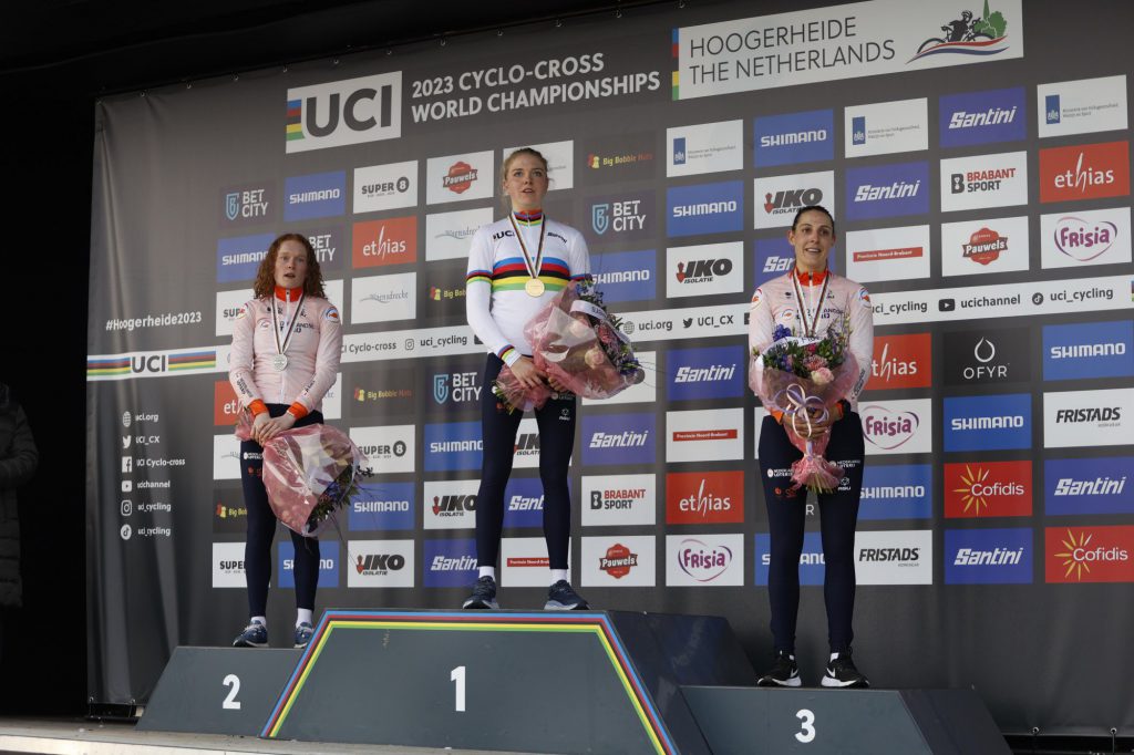 La corredora del Jumbo pone así el broche de oro a su gran temporada, en la que acumula 14 triunfos, logrando su primer Mundial élite a los 20 años, tras ganar el oro sub-23 en 2021 en su debut en la categoría, el campeonato europeo élite en 2022 y dominar esta temporada en la Copa del Mundo.