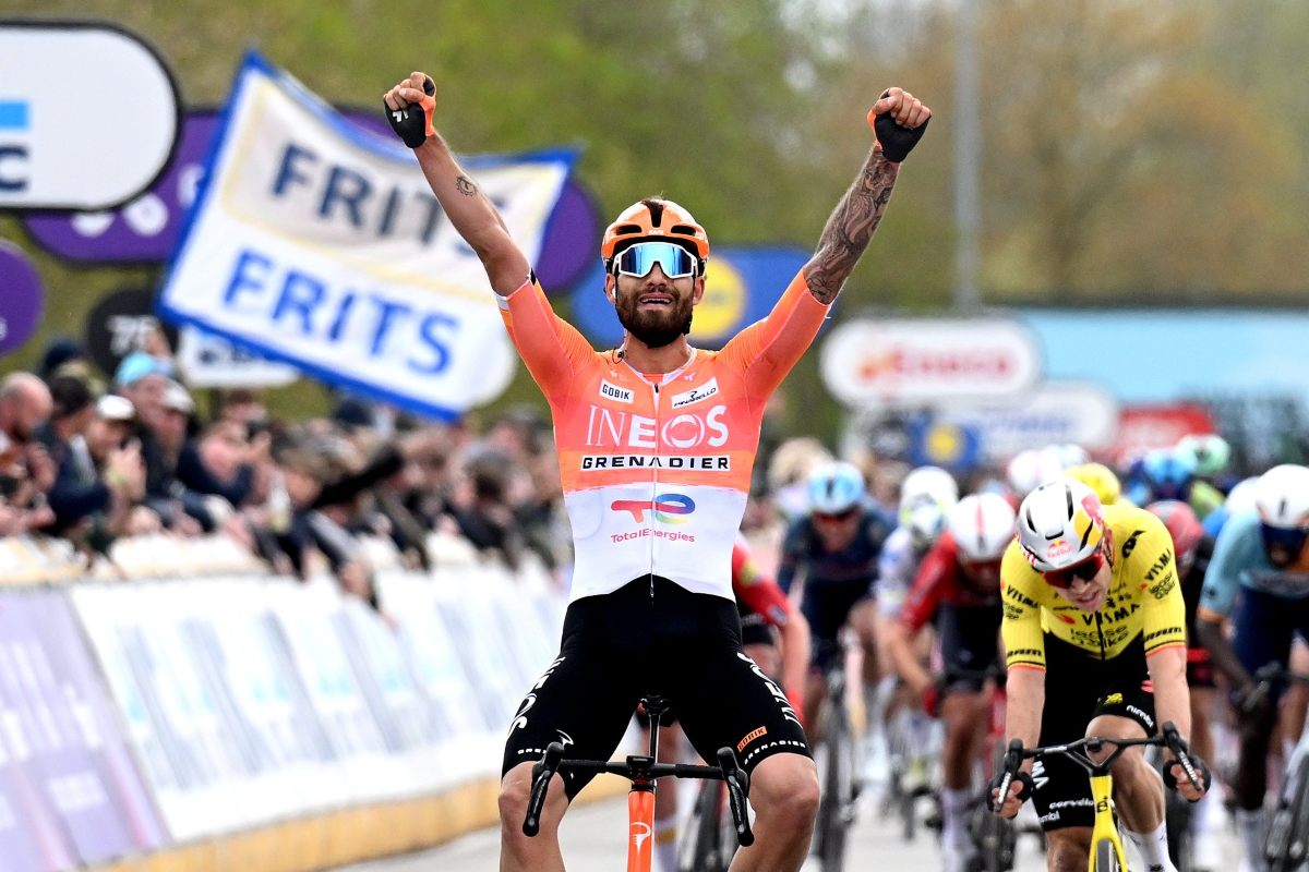 En un final lleno de emociones, Filippo Ganna (Ineos Grenadiers) salió victorioso en la octogésima edición de la clásica belga A Través de Flandes (Dwars door Vlaanderen), que contó con un recorrido exigente de 184,6 kilómetros entre las localidades belgas de Roeselare y Waregem.