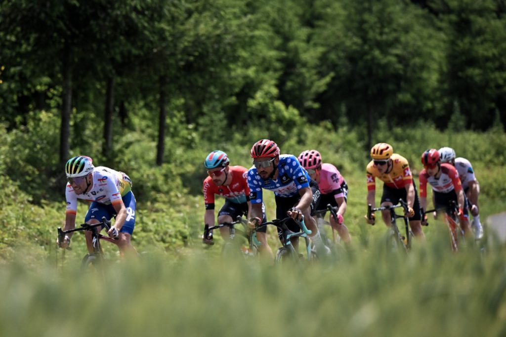 La fuga del día la protagonizaron Donavan Grondin (Team Arkéa Samsic), Jonas Gregaard (Uno-X Pro Cycling Team), Andrea Piccolo (EF Education-EasyPost), Victor Campenaerts (Lotto Dstny), Pierre Latour (TotalEnergies), Kenny Elissonde (Trek – Segafredo) y Nans Peters (AG2R), pero al final todos fueron neutralizados por el pelotón.