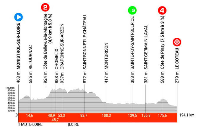 La ronda francesa continuará este martes con la disputa de la segunda etapa, una fracción de 194,1 kilómetros entre Monistrol-sur-Loire y Le Coteau, que incluye dos puertos montañosos y un final llano.