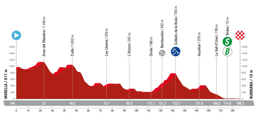 La ronda ibérica continuará este miércoles con la quinta etapa, una fracción ondulada de 186,2 kilómetros entre Morella y Burriana con un final llano, que incluye un premio de montaña categorizado pasando la mitad del recorrido.