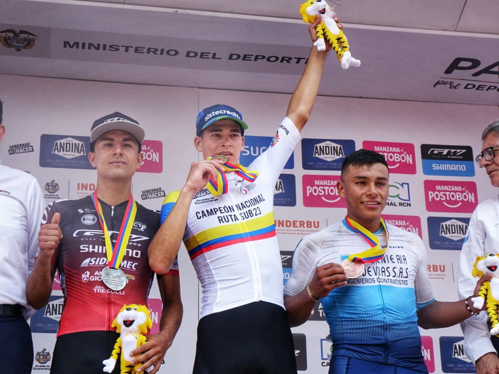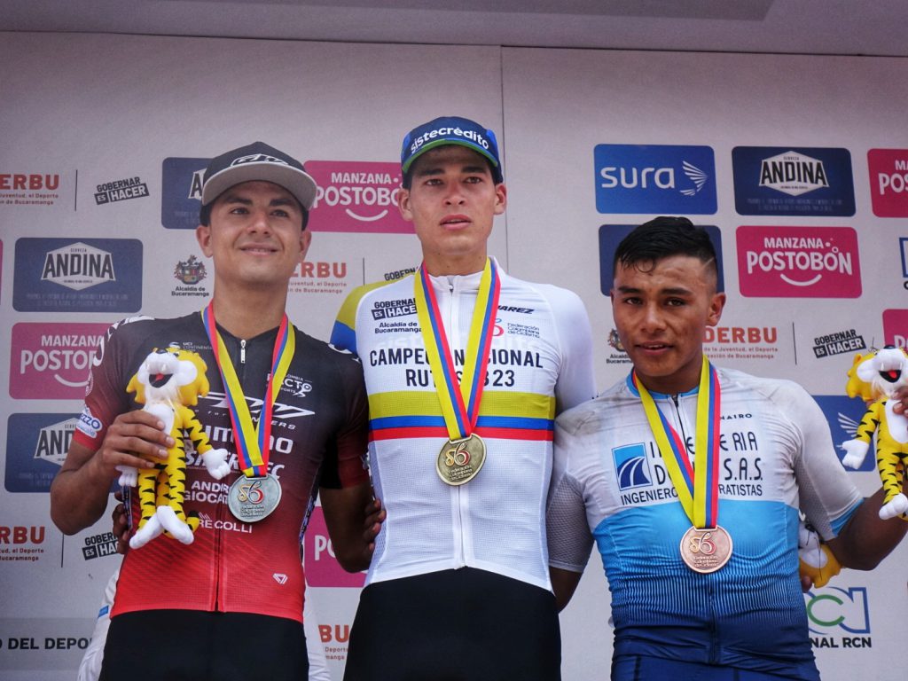 Podio final de la prueba de ruta sub-23 de los nacionales Bucaramanga 2023. (Foto Anderson Bonilla © RMC)