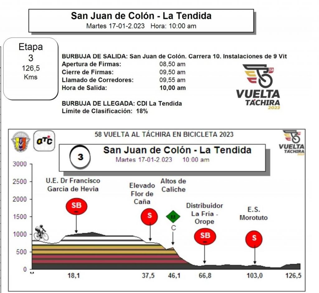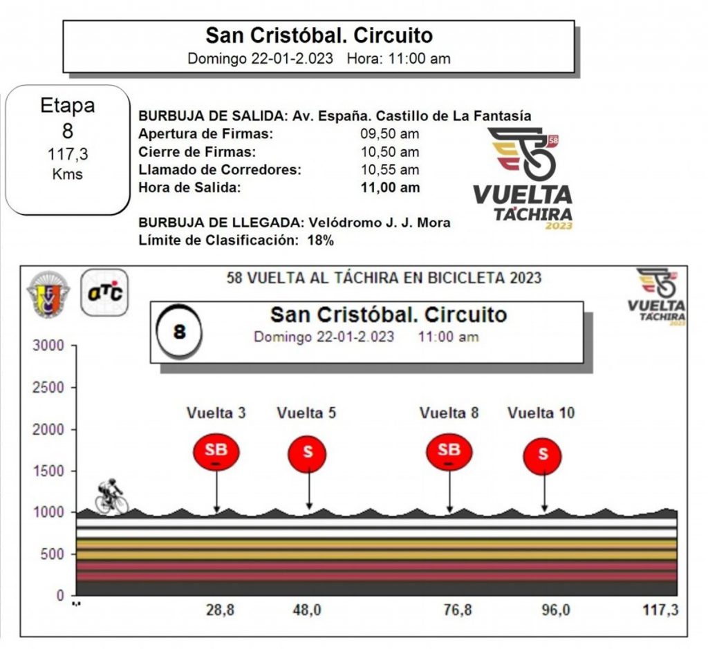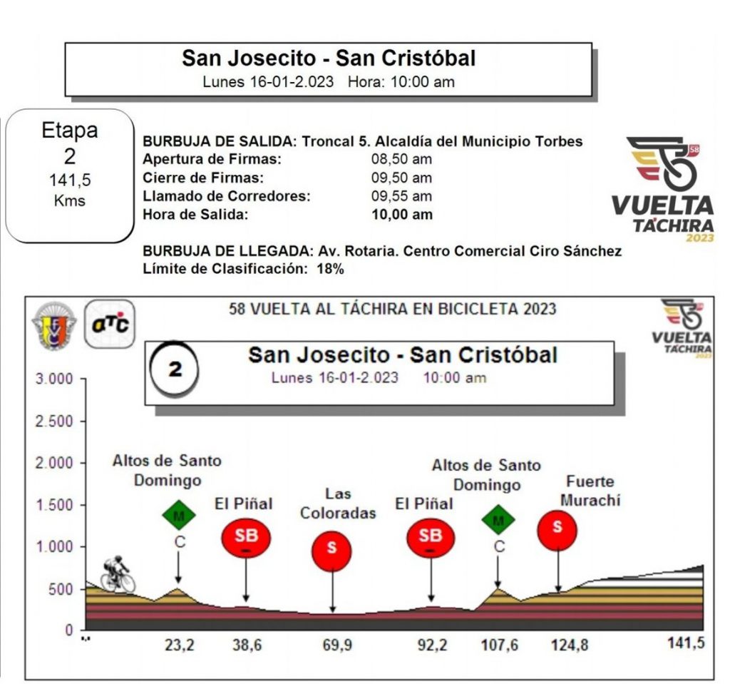 Este es el recorrido oficial de la 58ª edición de la Vuelta al Táchira 2023. La ‘Grande de América‘ iniciará en Táriba y llegará a San Cristóbal. La Revista Mundo Ciclístico les presenta los perfiles de las ocho fracciones que componen la tradicional ronda venezolana.