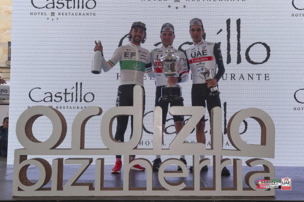En un accidentado cierre los españoles Juan Ayuso y Oier Lazkano se vieron afecados por la carretera mojada. El duó que comenzó el último kilómetro en cabeza de carrera, se fue al suelo en momentos diferentes en un descenso hasta la meta. Finalmente, el podio lo completó Ayuso.
