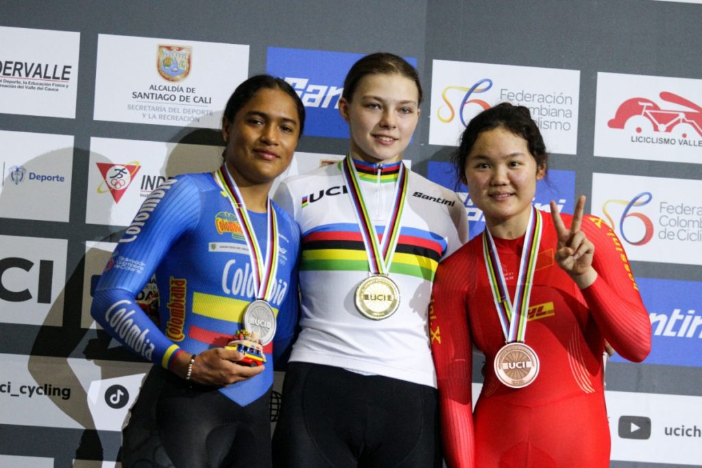 La joven pistera colombiana Stefany Cuadrado se colgó la medalla de plata en la velocidad femenina del Campeonato Mundial Junior de Ciclismo de Pista UCI Cali 2023.