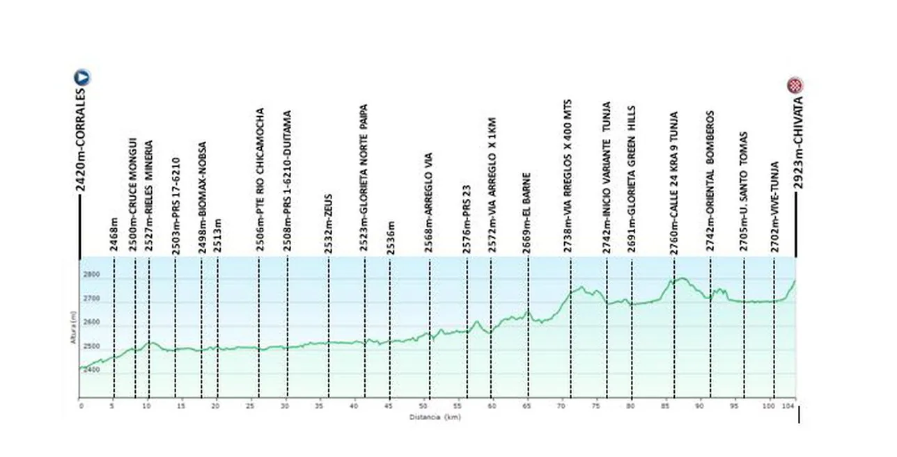 Finalmente, el domingo 28 de enero, el evento organizado por la Federación Colombiana de Ciclismo, culminará con la carrera para los profesionales élite, que se llevará a cabo en un exigente recorrido, que comenzará en el municipio de Corrales, pasará por Vadocastro, Sogamoso, Duitama, Paipa, llegará a Tunja y cumplirá con seis vueltas al circuito en la capital boyacense, antes de salir de la ciudad y dirigirse al municipio de Chivata, en donde terminará la carrera para completar un total de 211 kilómetros.